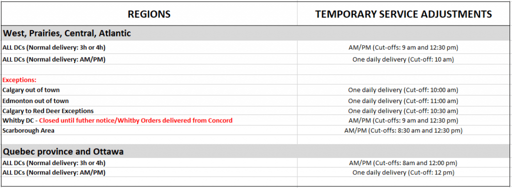 Because of this unique period and the global repercussions caused by COVID-19, we would like to advise you that some changes have been made to the services offered in different regions of Canada.